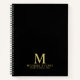 Le carnet professionnel dispose de monogramme personnalisé, nom et texte en or classique serif style de police sur arrière - plan noir. Remarque : Les détails du papier sont simulés dans l'illustration. Il n'y aura pas de métal sur ce produit.