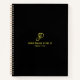 Carnet Spiral Professionnel Modèle Monogramme Élégant Noir Et Or Personnalisé.