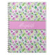 Un joli mélange de fleurs roses, grises et vertes sur ce carnet/journal. Monographie avec votre nom ou tout texte.