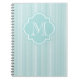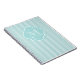 Carnet Monogramme M personnalisable | étiquette en quatrefoil pastel turquoise. Design motif à rayures élégant. Papier d'écriture personnalisé avec le nom lettre initiale. Idée de cadeau mignonne comme livre d'invité baby shower pour la nouvelle mère ou la mère d'être.