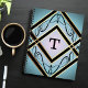 Carnet Monogramme moderne Art déco bleu élégant