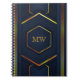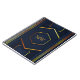 Faites-le vous-même avec un modèle monogramme initial ! Design moderne avec bleu marine et métal look or dans les formes géométriques y compris l'hexagone centré au milieu.