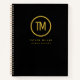 Carnet monogramme moderne entouré de noir et d'or avec nom personnalisé. Certaines combinaisons de deux lettres peuvent ne pas être connectées. Garder facilement les plans, les notes et les objectifs en un seul endroit.