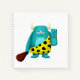 Petit monstre de dessin animé de couleur turquoise avec des cornes et des yeux bleus, portant un pagne jaune et noir, portant un club en bois d'une main et agitant de l'autre.