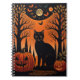 Un chat noir élégant est assis au-dessous d'une lune pleine et brillante, projetant une silhouette énigmatique contre le ciel orange vif. Des arbres en silhouettes et des citrouilles éparpillés ci-dessous apportent une touche de fantaisie à la scène. Saviez-vous que dans l'Égypte ancienne, les chats étaient vénérés comme des animaux sacrés et étaient souvent associés à la déesse Bastet, qui représentait la protection, le plaisir et une bonne santé ? Cette oeuvre capture la mystique de la nuit d'Halloween et le lien durable du félin avec le surnaturel.