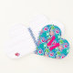 Carnet en forme de coeur dans un motif fractal tourbillonnant dans les tons bleu, rose, vert et turquoise, accentué de blanc, avec monogramme personnalisé