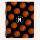 Ce carnet en spirale de basket présente un motif de balles de basket sur un arrière - plan noir - personnaliser avec monogramme - par katz_d_zynes