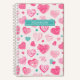 Joli et coloré carnet en spirale motif avec nom personnalisé. Parfait pour le journal intime, le journal de vie, le carnet de croquis, le livre de recettes ou simplement prendre des notes en classe. Sweet Valentine's Day motif avec l'amour et le coeur kawaii. Idéal pour les enfants et les filles ados. Faites un grand cadeau pour la fête de retour à l'école.