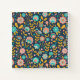 Ce design d'art folklorique présente un motif floral rose, orange et turquoise sur un arrière - plan bleu foncé.