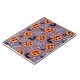 Ce design est doté d'un motif d'Halloween dynamique avec un design ludique et mignon. Le motif présente des lanternes jack-o'-lanternes orange vif aux diverses expressions joyeuses et conviviales. Ces citrouilles sont entourés d'un arrière - plan violet rempli de toiles d'araignées blanches, de chauves-souris noires, de lunes de croissant, d'étoiles, de maïs bonbon et de petites araignées. Le thème général est amusant et festif, ce qui le rend parfait pour une décoration d'Halloween légère ou un design thématique. La palette de couleurs est un mélange de couleurs traditionnelles d'Halloween (orange, noir et violet) avec des touches de blanc et de jaune pour le contraste.