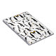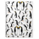 Un motif noir et blanc de pingouins. Les oiseaux se montrent à l'échelle appropriée les uns contre les autres. Ce sont des pingouins du roi, des pingouins empereurs, des petits pingouins, des pingouins macaronis, des pingouins huppés, des pingouins sud-africains et d'autres.