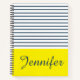 Motif moderne rayé blanc, bleu et jaune avec nom personnalisé