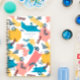 Carnet moderne et ludique avec un motif fantaisiste de formes et de figures en bleu, rose, jaune et blanc. Personnalisez avec votre propre texte sur la couverture, comme votre nom ou le but du carnet.