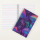 A vibrant and intricate design features glowing, mystical fungi rendered in an iridescent neon palette of violet, teal, magenta, and bright blue. The psychedelic mushrooms are surrounded by delicate, ethereal flowers and foliage, creating a truly whimsical and enchanting forest scene.