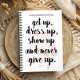 Ne jamais renoncer à la typographie - Un beau planificateur motivationnel avec un arrière - plan de peinture aquarelle douce dans des tons élégants de rose et beige. Le message : "Peu importe ce que vous ressentez - levez-vous, habillez-vous, montez et n'abandonnez jamais." Réveillez-vous inspiré, profitez de la journée avec ce livre de notes sensationnel. Ne manquez jamais vos événements importants et continuez à sourire avec ce message de coeur senti.