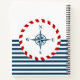 Design nautique avec décoration de boussole en forme ronde sur bleu et blanc rayé arrière - plan
