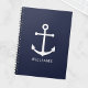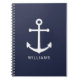 Carnet Nautical White Anchor and Custom Nom on Navy Blue