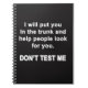 Pour l'amoureux du sarcasme en chacun de nous. Regardez cette spiritualité "Je vous mettrai dans le coffre et aiderai les gens à vous chercher. Ne me testez pas." design sur vêtements et cadeaux.