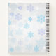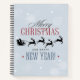Un carnet festif en spirale de Noël. Un arrière - plan gris subtil avec des flocons de neige. Lettres tendance qui dit : Joyeux Noël et Bonne Année. Avec une Père Noël silhouette noire dans son traîneau tiré par son renne volant à travers le ciel. Motif de flocon de neige sur le couvercle arrière.