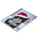 Chat noir et blanc mignon portant un chapeau de Père Noël.