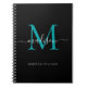Monogramme Turquoise moderne noir vert Nom du script Carnet initial