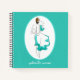 Nom customisé Fashion Illustration Journal/Carnet. Carnet d'illustration de mode haute couture élégant mis en évidence par un cadre ovale de couleur turquoise. Ce petit carnet branché ferait un sketchbook de design de mode parfait / revue de design de mode. Votre nom et votre choix de polices peuvent être facilement insérés à l'aide de l'outil de conception de Zazzle.