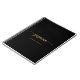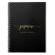Cahier de notes en spirale de script de signature féminine de monogramme moderne, simple, noir et or. Ce design minimaliste de couleur unie présentant votre prénom dans une jolie typographie de lettre à la main avec un enjoliveur, avec un modèle de nom complet et facile à personnaliser. Cadeau personnalisé génial pour une fête d'anniversaire, un mariage, une douche de mariée, une fête d'anniversaire pour les 16 ans, une douche de bébé et pour quiconque aime le style minimaliste joli.