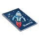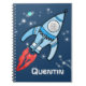 Personnalisez cette explosion de fusées spatiales carnet bleu / journal avec votre propre choix de nom et photo dans le trou de port, actuellement lit Quentin. Illustration et design d'origine par Sarah Trett.