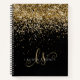 Carnet Monogramme Élégant de Parties scintillant Glam Gold. Personnalisez facilement ce design carnet chic branché avec une élégante parties scintillant dorée sur un arrière - plan noir. Le design comprend votre monogramme manuscrit avec de jolis tourbillons et votre nom.
