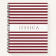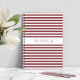 Carnet Spiral avec un imprimé de nom personnalisé sur un motif rayé minimaliste rouge et blanc.