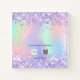 Un arrière-plan holographique tendance avec des couleurs de licorne et des couleurs arc-en-ciel en rose, violet, vert menthe. Décoré de confettis violets et lavande. Personnalisez et ajoutez votre nom, titre, texte