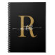 Cahier à spirale moderne, simple et élégant avec monogramme initial noir et or. Ce design minimaliste de couleur unie présente votre prénom dans une jolie typographie à lettres manuscrites avec des fioritures (ou calligraphie), modèle de monogramme initial, facile à personnaliser. Cadeau personnalisé idéal pour une fête d'anniversaire, une pendaison de crémaillère, un mariage, un anniversaire pour les 16 ans, une fête de mariage, une baby shower et pour quiconque aime le style minimaliste chic.