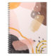 Carnet personnalisé avec un nom et un abstrait boho motif aux couleurs rose, orange et marron.