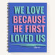 Un verset bien-aimé de la Bible de 1 Jean 4:19 sur un arrière - plan bleu vif. Parfait pour les études bibliques et les notes d'Écriture.