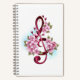 Carnet Notes de clef musicale en treble avec des fleurs S