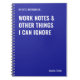 Carnet amusant pour les collègues de bureau, les gestionnaires, les amis de travail ou d'autres professionnels de l'administration et des affaires. Personnalisez le nom à imprimer en bas de la couverture "Notes de travail et autres choses que je peux ignorer". Les carnets personnalisés sont parfaits pour les anniversaires de travail, les vacances, les échanges de cadeaux de bureau et plus encore!