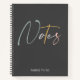 Un cahier élégant et mignon. Avec un fond gris foncé, le mot Notes est en typographie script dans des couleurs vert clair, gris, jaune et rose. En dessous, en typographie gris clair moderne, il est écrit "choses à faire".