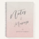 Arrière - plan aquarelle en dégradé rose doux, avec la calligraphie en écriture moderne gris colombe "Notes et Musings" pour inspirer vos idées et pensées créatives, personnalisées avec votre nom sur le devant et votre monogramme avec le nom sur le dos. Ajoutez vos propres informations en suivant le lien "Personnalisez ce modèle".