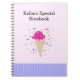 Un journal ou un carnet spécial avec un arrière - plan rose doux avec un cône de glace confetti rose. Confetti fait le tour. L'endroit parfait pour une jeune fille pour écrire ses pensées secrètes.