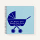 Créez une conservation unique pour l'honneur de votre baby shower. Demandez à chaque client de noter ses conseils pour la future mère dans ce carnet bleu. Le carnet a un chariot bleu foncé devant. Vous pouvez personnaliser le texte avec le nom et la date de baby shower de l'honoré ou tout autre texte souhaité.