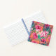 Notre magnifique carnet capture les vibrations d'une oasis tropicale avec nos feuilles tropicaux dessinés à la main, le feuillage et les fleurs tropicales roses de l'hibiscus en fleurs pour créer ce design élégant et dynamique de jungle tropicale. "Notes" est affiché dans une typographie de script de brosse tendance en blanc et personnalisé avec votre nom à l'avant et à l'arrière. L'envers présente un design tendance et élégant de bandes dorées et roses de corail avec une belle feuille tropicale et un feuillage fleuri. Toutes les illustrations contenues dans cette élégante feuille de palmier tropicale et fleurs d'hibiscus roses sont dessinées à la main par Moodthology. Vous pouvez customiser la couleur arrière - plan pour votre propre préférence de design personnel.