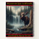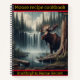 Un grand orignal se dresse près d'une cascade sereine, entouré de grands arbres à feuillage persistant. Le soleil se couche derrière les montagnes, projetant une lumière chaude sur le paysage paisible. REMARQUE Pour modifier des couleurs de texte ou de bordure, utilisez l'outil Modifier à l'aide de la conception