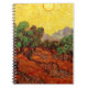 Olive Trees with Yellow Sky et Sun Vincent van Gogh. Riche et chaleureuse impressionnisme peinture à l'huile de couleur d'une ferme d'oliviers.