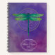 libellule aquarelle peinte à la main dans les tons verts avec des détails illustrés complexes contre un arrière - plan violet de teintes variées avec un cadre circulaire et une carte étoilée semi-translucide. Texte entièrement personnalisable !