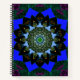 un magnifique mandala bleu, noir et violet sur un bloc-notes à spirale