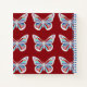 Pretty jewel colored ornate looking butterflies outlined in white on a red background.