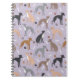Les mignons chiens italiens Greyhound s'assoient et se tiennent avec des manteaux gris, faun, noir, rouge faun et bleu avec des os de chien éparpillés et des motifs de pawprints.