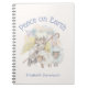 Un journal de carnet pastoral sucré. Conçu avec un ange serein aux ailes jaunes tenant un crook berger. Assis à côté de 2 agneaux blancs moelleux. L'aquarelle s'écarte autour de l'image en se mélangeant à un arrière - plan blanc en coquille d'oeuf. Le texte dit : paix sur terre. Personnalisez avec un nom ou un autre texte.