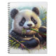 Peinture de jeune panda mignon mangeant des pousses de bambou vert