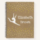 Des confettis d'or pleuvent sur du papier kraft brun pour faire ce mignon carnet de danse. Une silhouette blanche d'un danseur saute dans l'air à côté de votre nom ou d'un autre texte choisi.